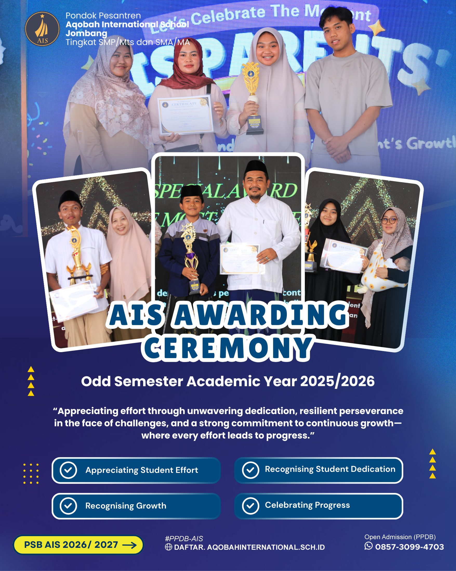 Pondok Pesantren Aqobah International School (PP. AIS) sukses menyelenggarakan AIS Parents Day pada Sabtu, 04 Januari 2026. Kegiatan ini menjadi... Read More...